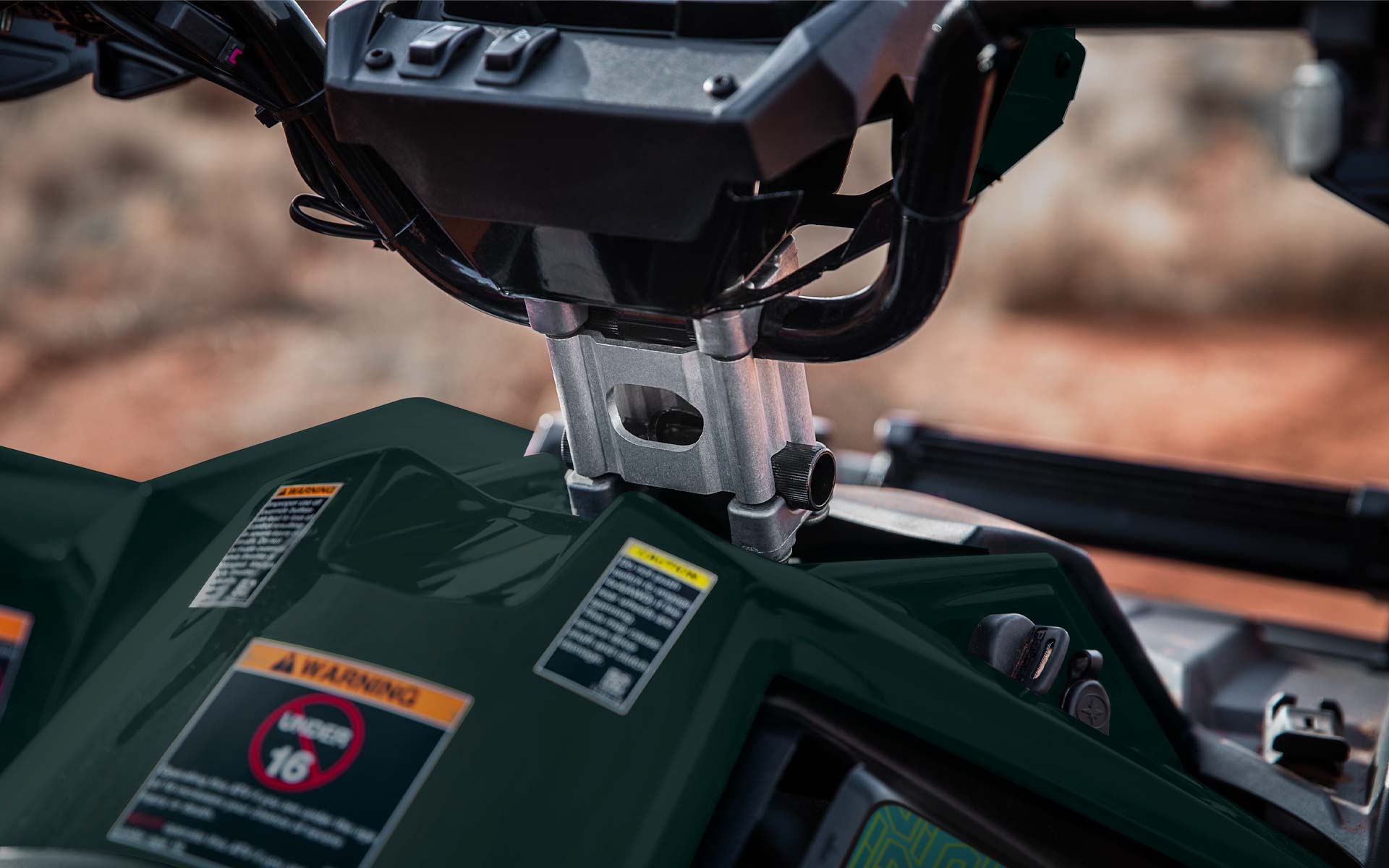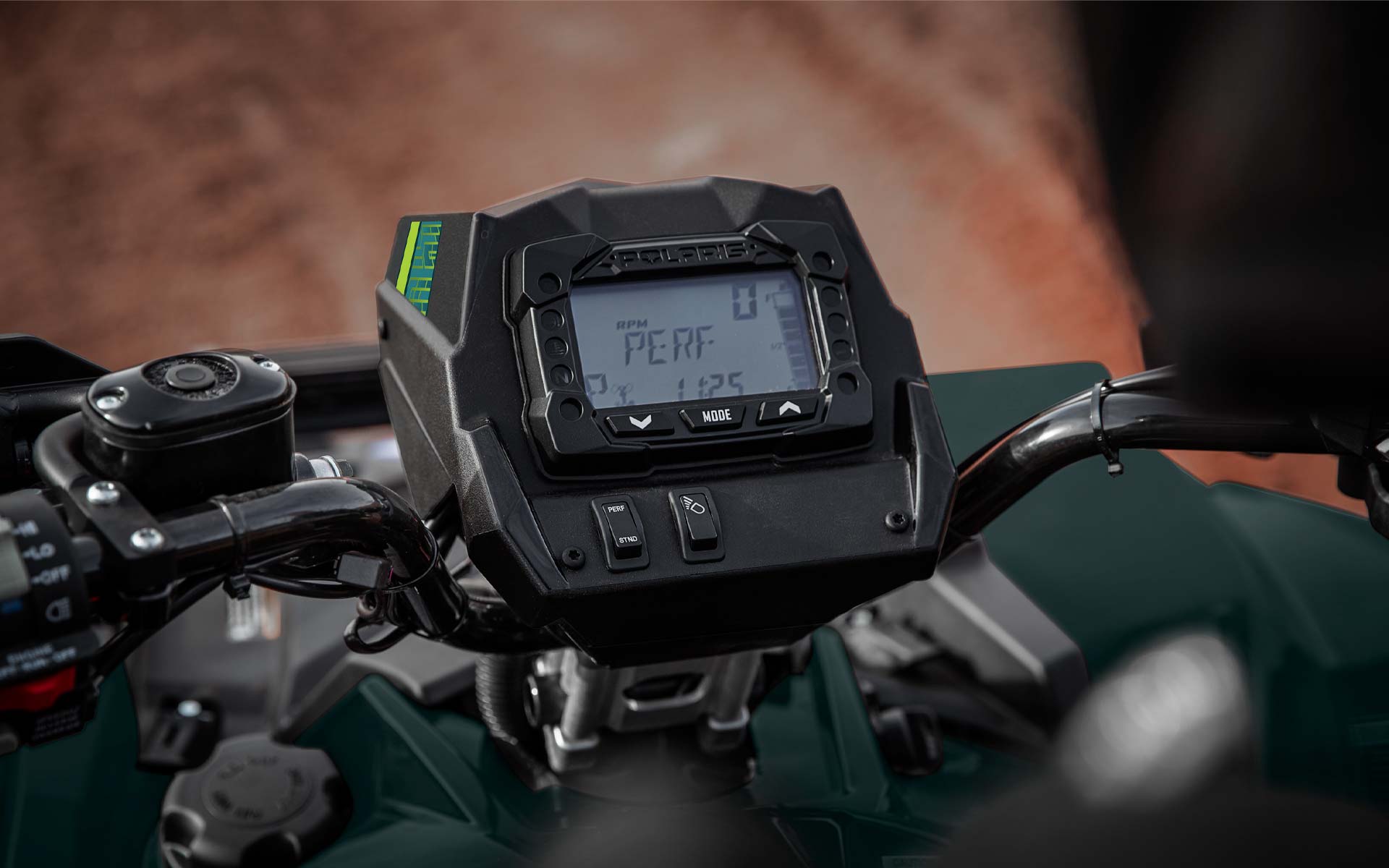 2 modes de conduite : Performance/Standard, Prise d'alimentation 12 volts, pré-câblée pour chauffe-mains et chauffe-pouces, port de chargement de batterie indépendant, Pare-chocs avant, plastiques peints, ressorts peints, élargisseurs d'ailes